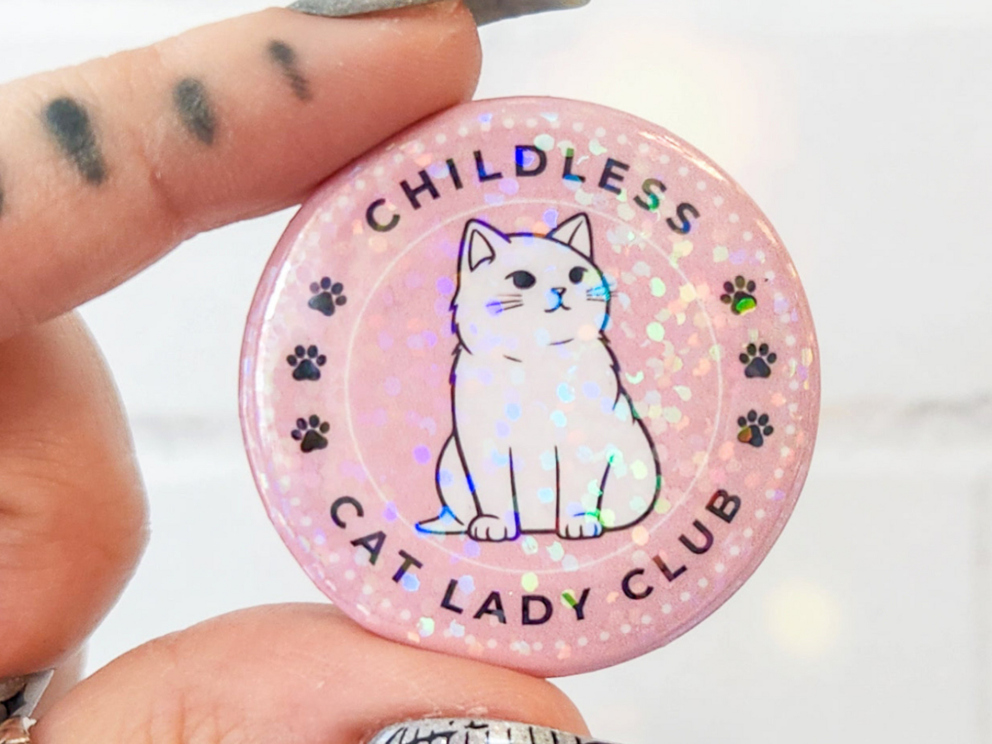 🐱⬛ Funny "Childless Cat Lady Club" Holographic Button 🐱⬛
