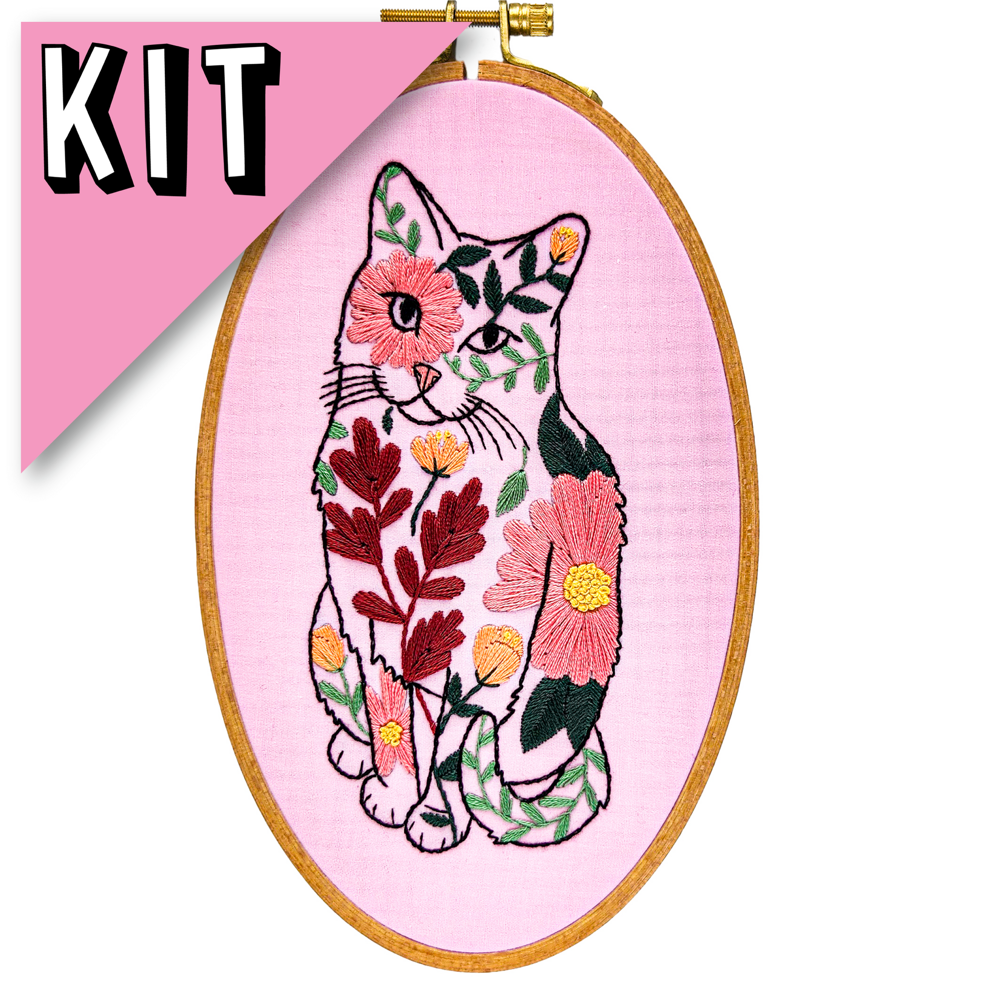 Easy Embroidery Kit Poppy Flower Cat, 8 x 5 in.