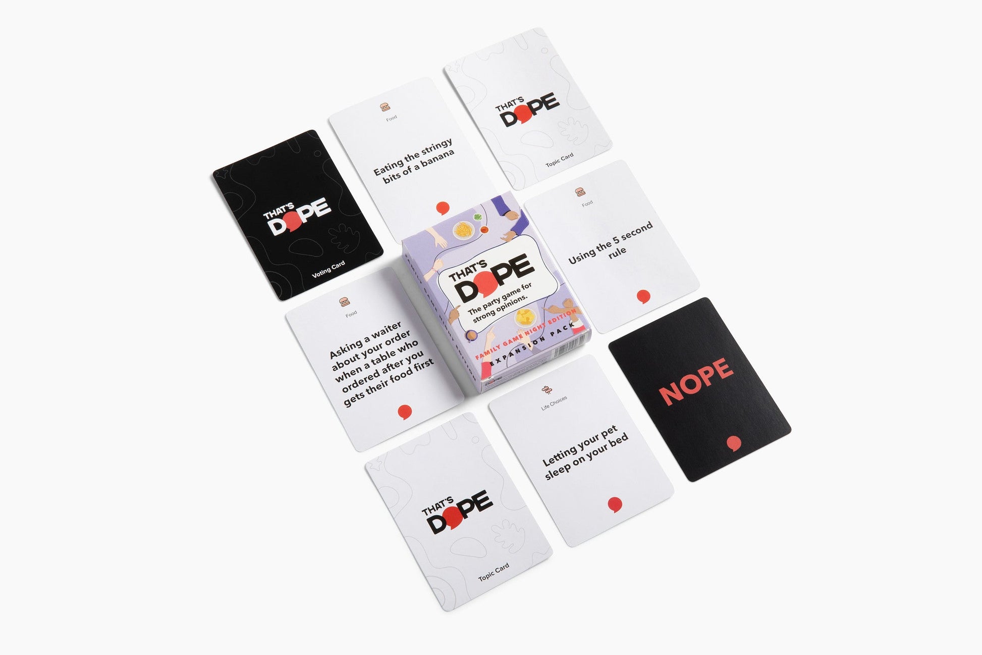 That’s Dope: Family Game Night Edition is the perfect game for the whole family and the rules are simple! Each round players take turns guessing who voted “Dope” or “Nope” to hilarious, controversial, family-friendly topics. Find out how well you know your family and loved ones.